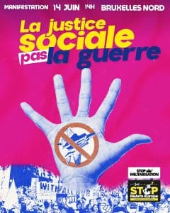 Avec la plateforme Stop ReArmEurope et Stop Militarisation, nous nous opposons clairement à cette militarisation de la société, qui ne fait que nous rapprocher davantage de la guerre. Nous rejetons les projets de l’Union européenne visant à dépenser 800 milliards d’euros supplémentaires dans l’armement, un argent retiré des services sociaux, des soins de santé, de l’éducation, de la coopération internationale et de la justice climatique.